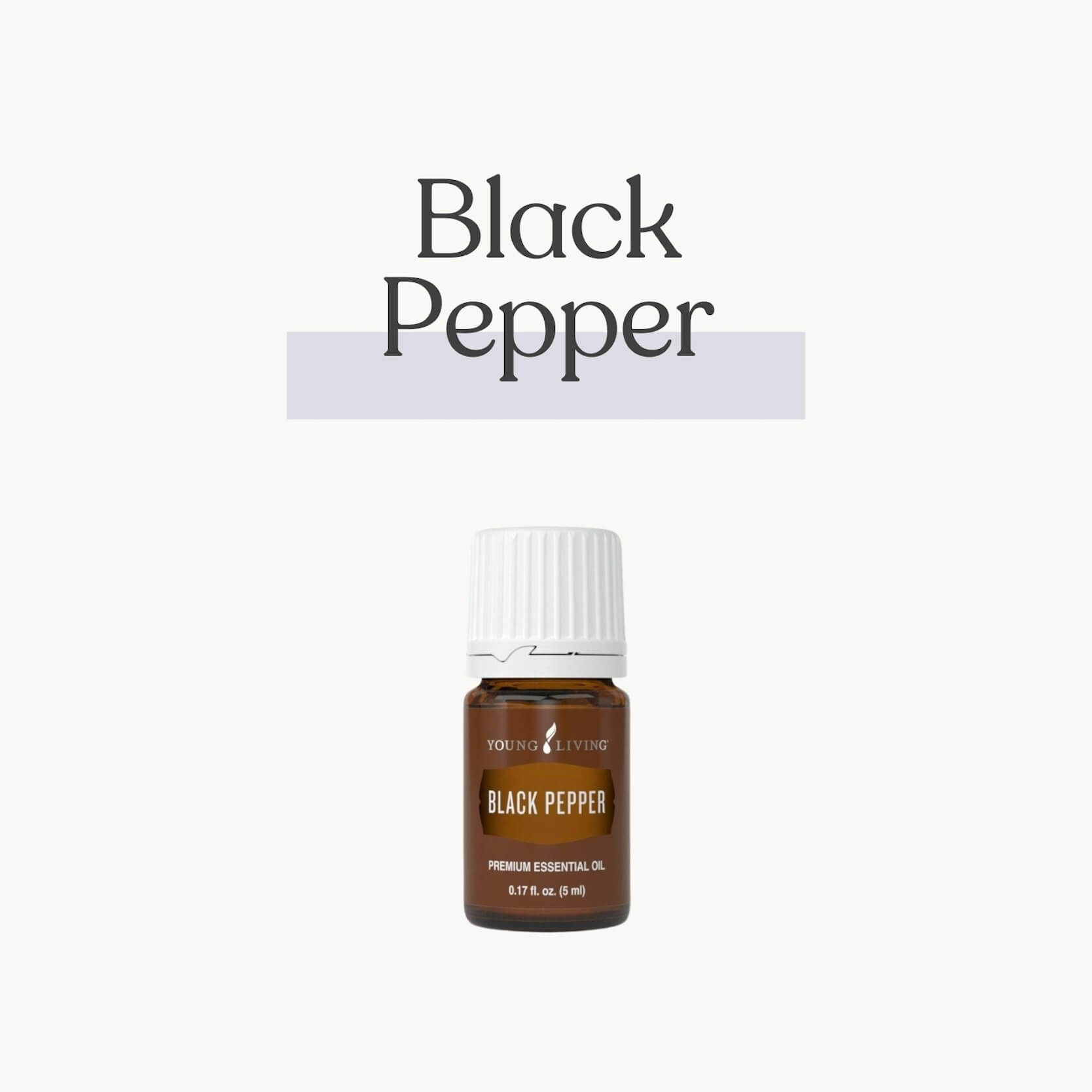 Black Pepper can also be used to invite romance and set the stage for connection. Pair it with Ylang ylang, Jasmine, Rose, and Bergamot for a romantic blend with a hint of spice. (Remember, a little goes a long way!)