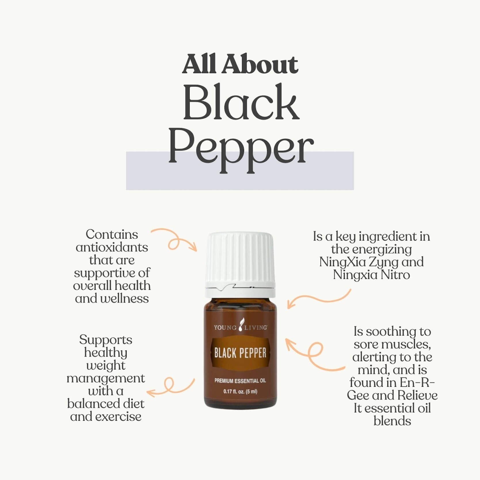 Black Pepper is found in Awaken, En-R-Gee, and Relieve It essential oil blends as well as Cel-Lite Massage Oil, NingXia Nitro and NingXia Zyng.