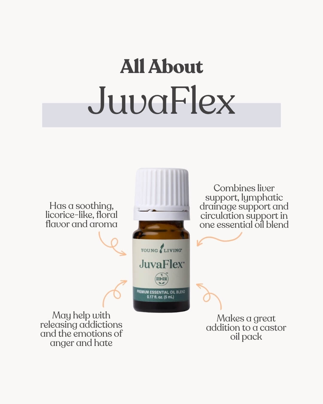 Note: JuvaFlex and JuvaFlex Vitality are the same essential oil. Vitality oils are simply labeled for ingestion, but the oil is the exact same.
