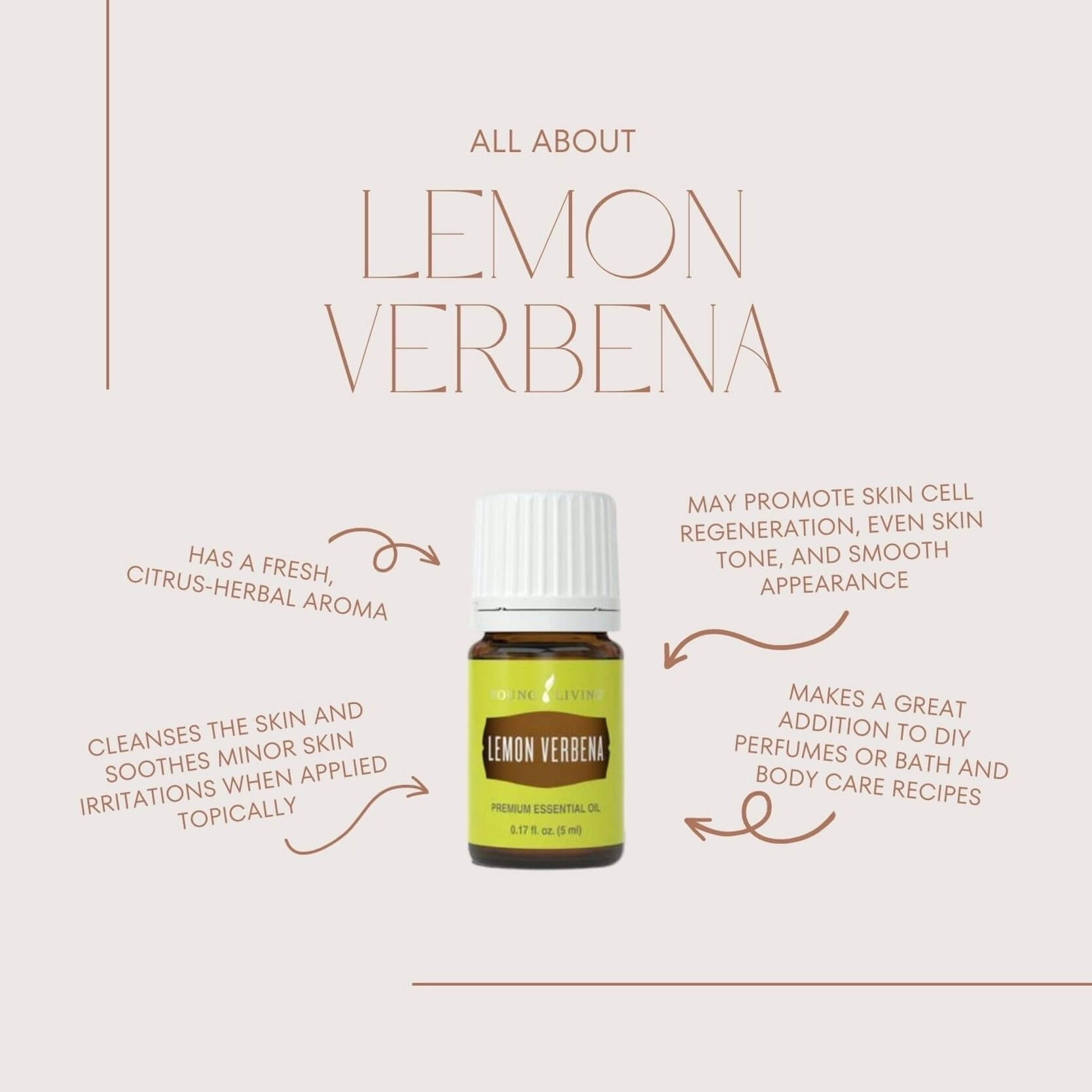 Add 15 drops of Lemon Verbena to diluted Thieves Household Cleaner for a daily spray.
