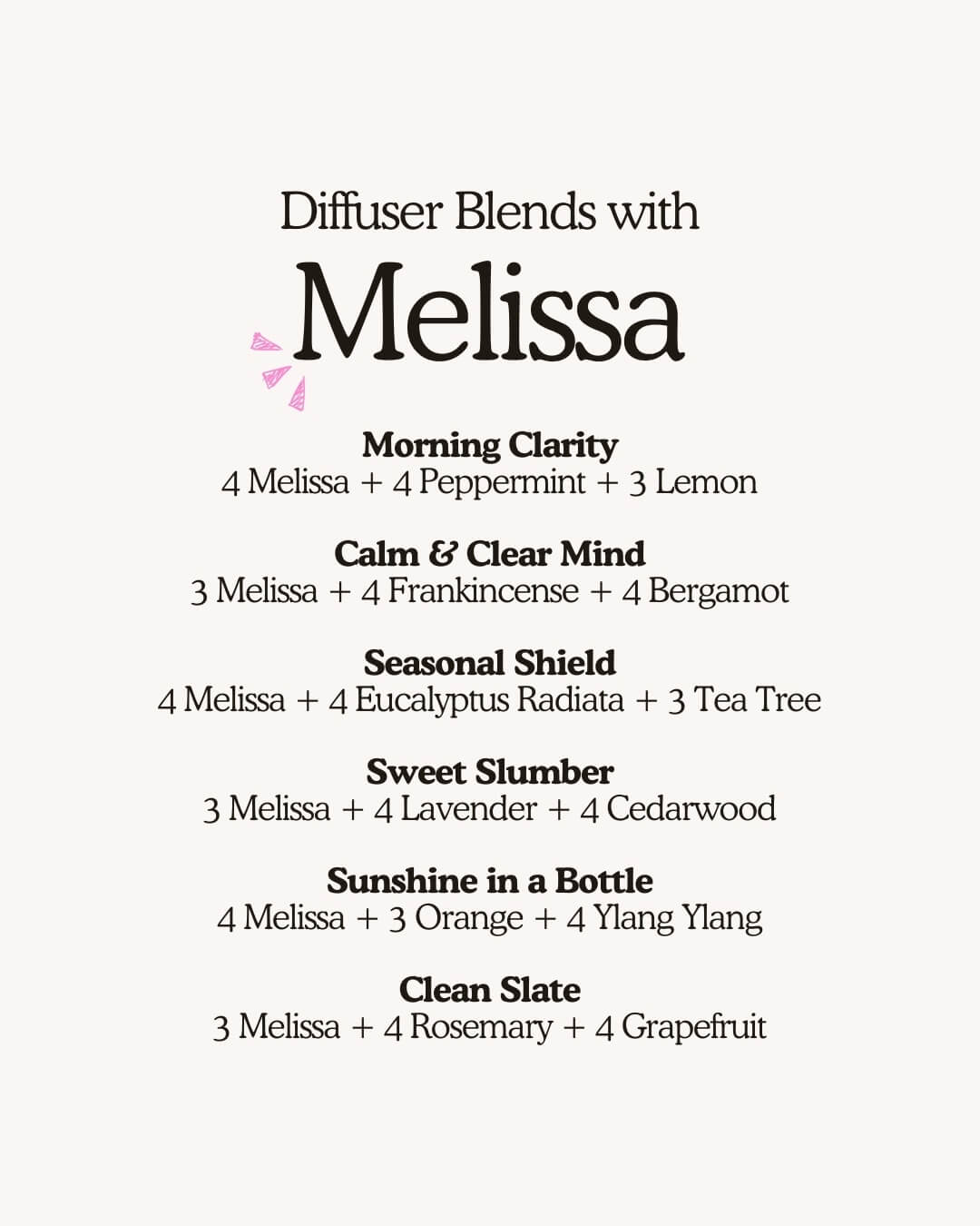 From a quick roll-on at your pulse points to a fragrant soak in the tub or a diffused glow throughout your home, Melissa transforms simple routines into mindful, feel-good experiences that nourish both body and spirit.