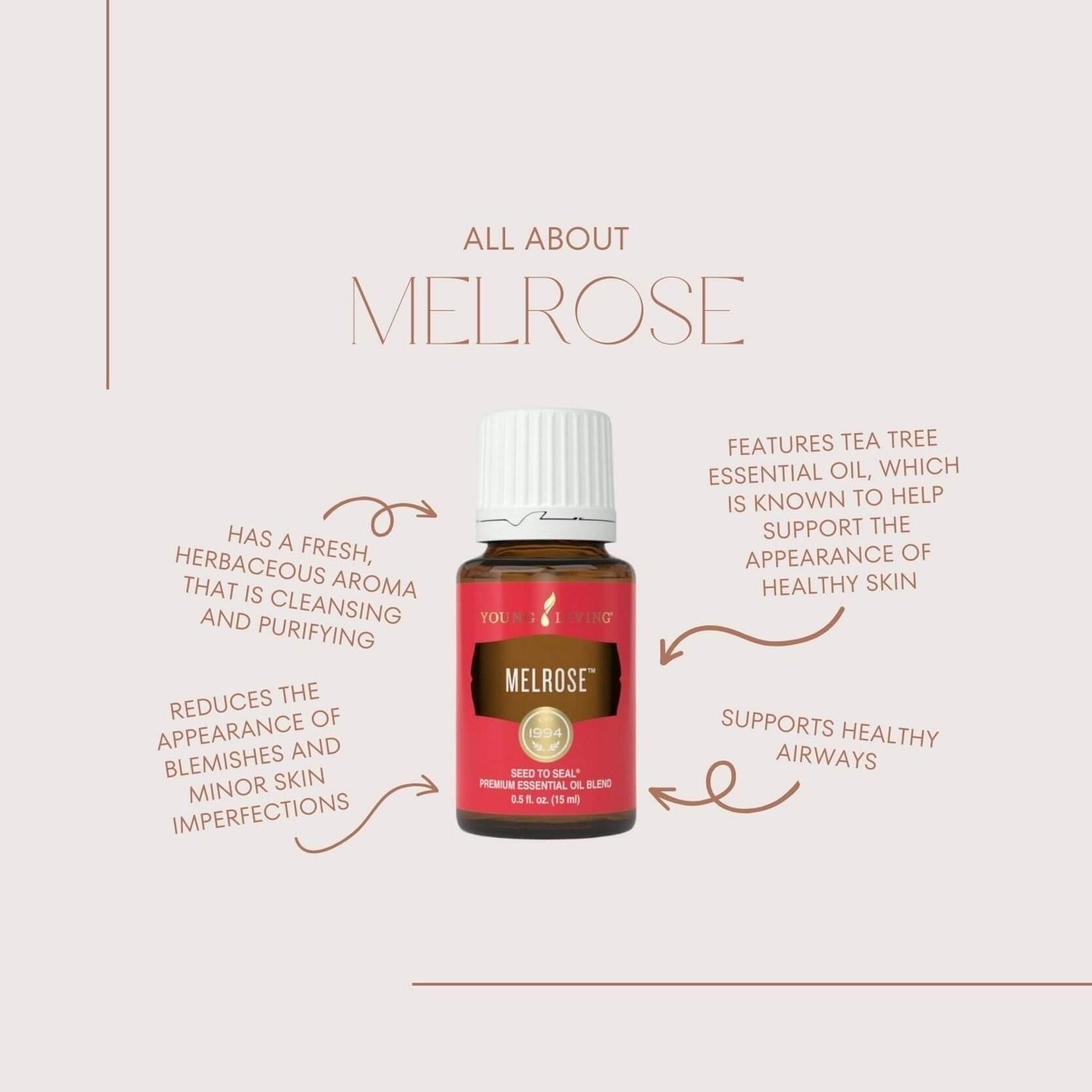 Young Living Founder D. Gary Young created Melrose essential oil blend for its cleansing properties, whether used topically or diffused. Native to Australia, Tea Tree essential oil is widely regarded for its cleansing properties, with topical applications for skin, hair, and nails. In addition to these benefits, Tea Tree is known for its ability to effectively neutralize unwanted odors, making it a great addition to this blend. Rosemary and Clove round out the cleansing properties and add support for the immune system, respiratory system, and health overall.
