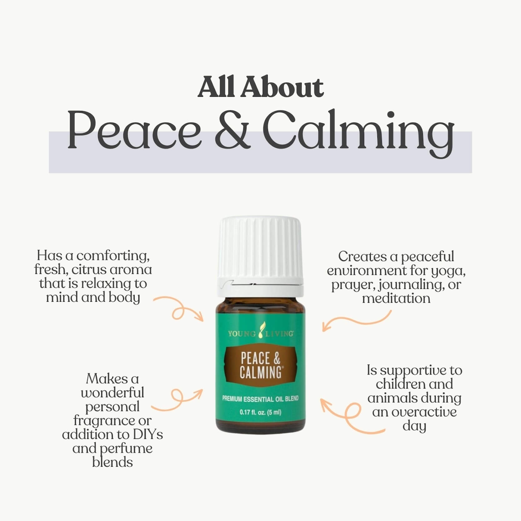 Peace and Calming is one of Young Living's most popular blends, and for good reason! This blend of Tangerine, Orange, Ylang Ylang, Patchouli, and Blue Tansy will surely become a favorite in your family to relax the body and calm emotions. This oil can signal overtired and overworked body systems that it is a safe space to release stress and invite in a sense of calm. It is also one of our favorites for supporting sweet, restful sleep!