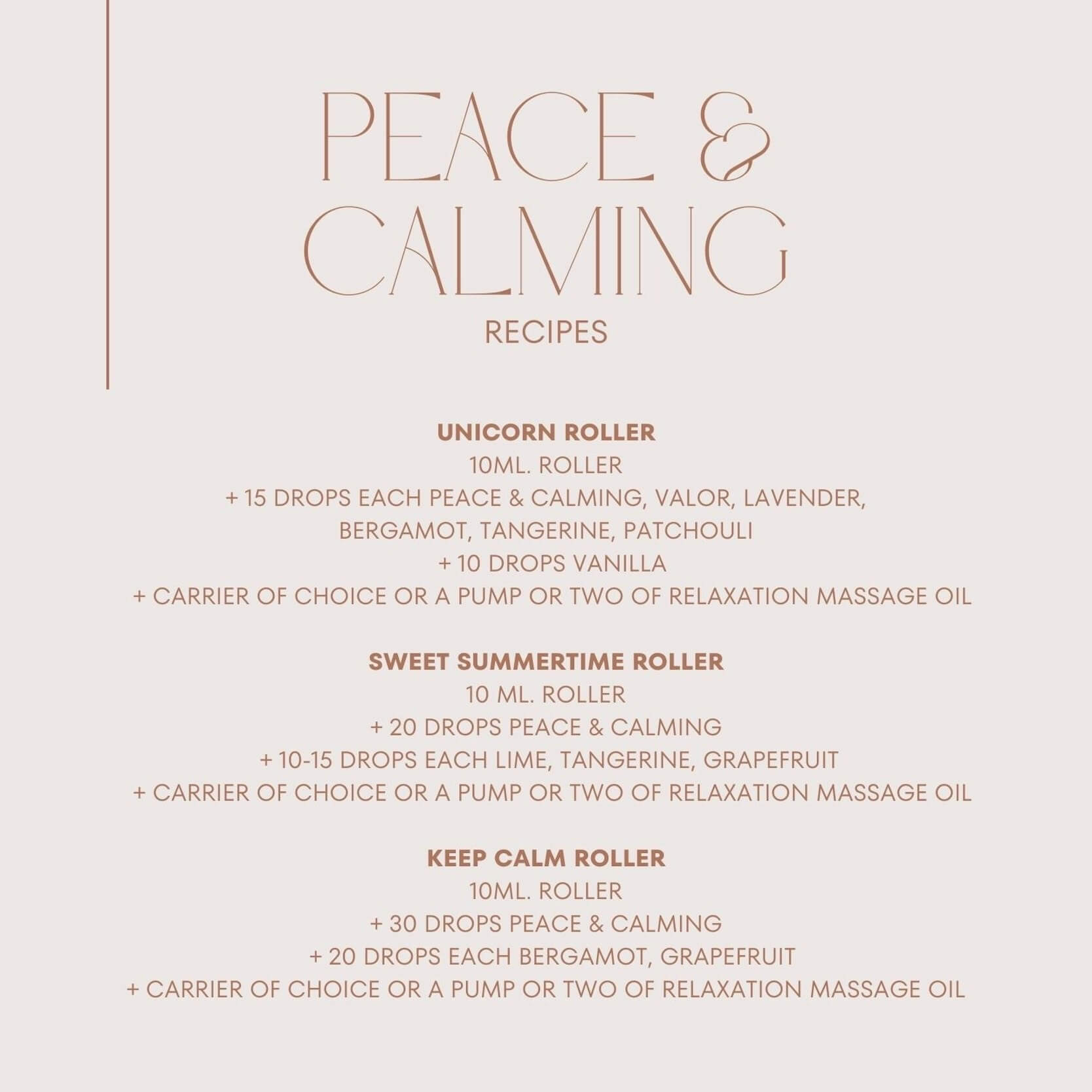 Diffusing is a wonderful health habit! Our diffusers are running 24/7 with blends that are supportive of individual needs or systems. Try some of these great combinations and enjoy the calming scent of Peace & Calming!