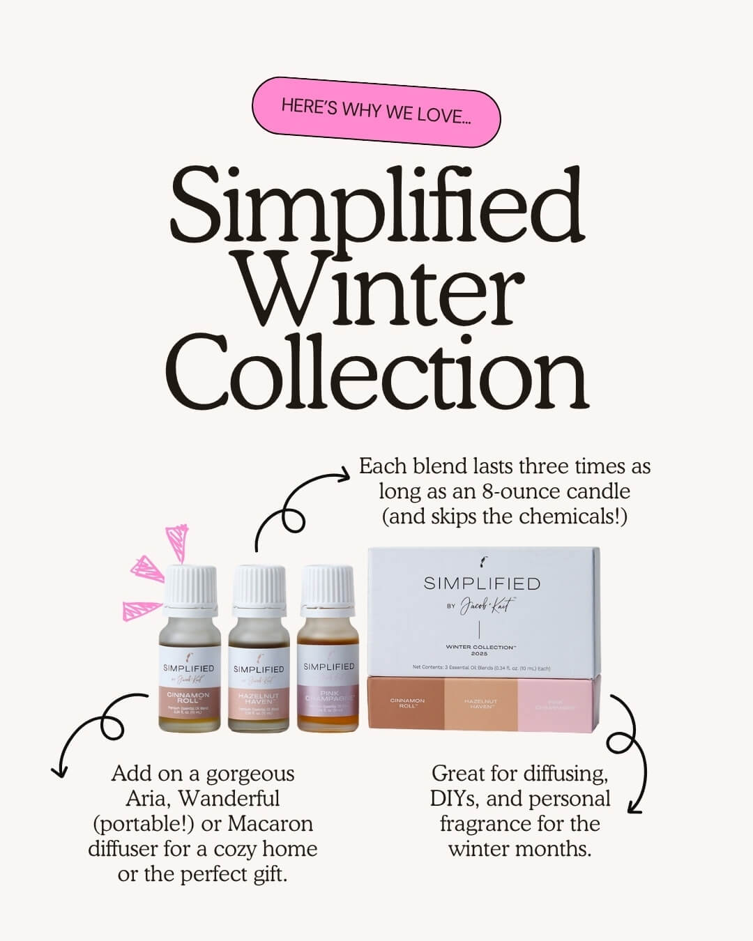 This holiday season, embrace cozy home vibes without the side of paraffins and phthalates from conventional candles and plug-ins. Whether you’re setting the stage for holiday parties or settling in with loved ones, Hazelnut Haven, Cinnamon Roll, and Pink Champagne blends bring the spirit of the season into every room. Each comforting scent is thoughtfully crafted with Young Living essential oils and no added harmful, synthetic chemicals—because the holidays deserve to smell as good as they feel!